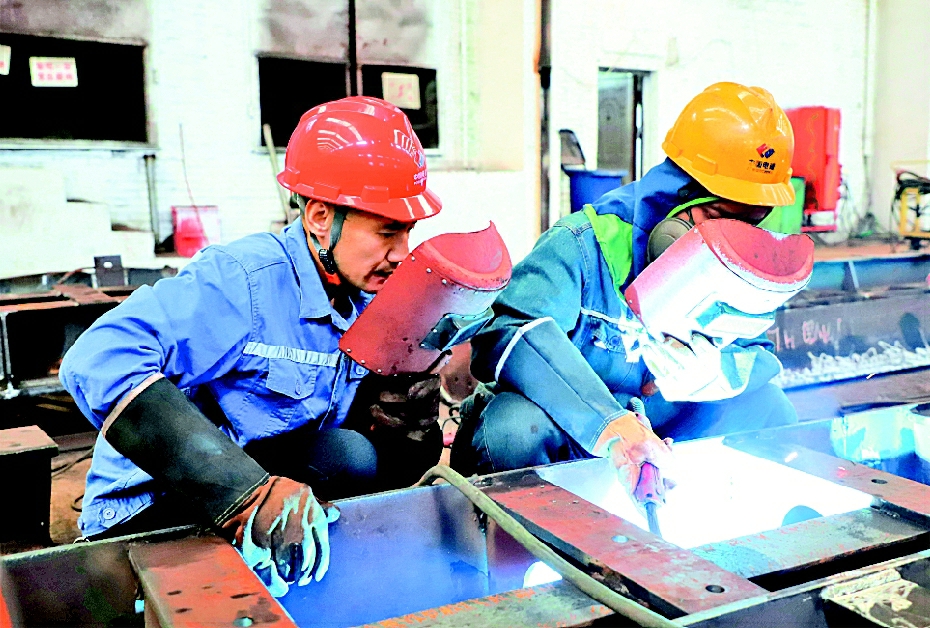 在火花飞溅的焊接区域,焊工一班班长干鹏正指导徒弟进行规范操作。“注意角度,保持均匀。”干班长声音洪亮,一边示范一边讲解。只见干鹏手握焊枪,身形稳如泰山,随着“滋滋”的声响,一道均匀完美的焊缝在金属表面缓缓延伸。完成示范后,他退后一步,专注地注视着徒弟的操作,不时点头表示肯定。“要把每个产品都当作艺术品来打磨。”这句话,干班长已经不知道说了多少遍,但每次说出口时,眼神中依然闪烁着炽热的光芒。