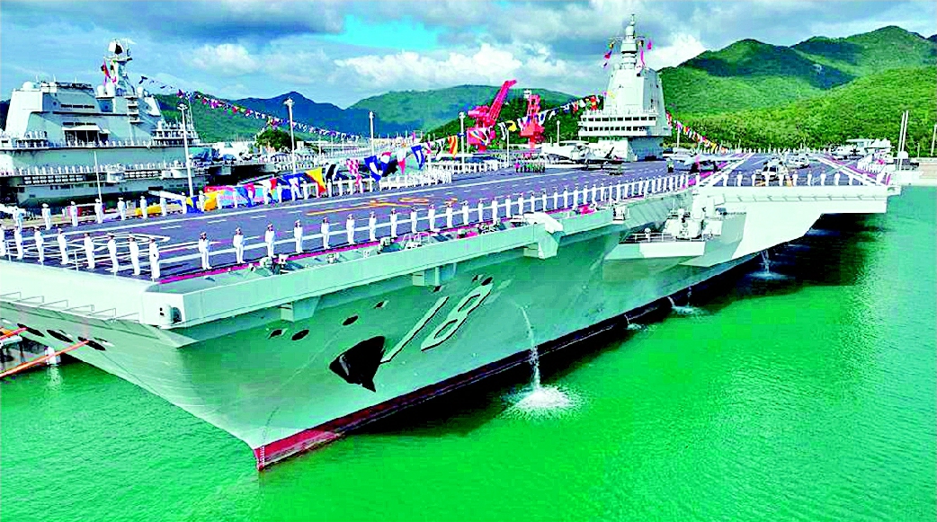 十一月的三亚,海阔天高,碧波浩瀚。军港内,福建舰踏海而立、满旗高悬,山东舰伏波相伴,来自海军部队和航母建设单位的代表2000余人在码头整齐列队,气氛隆重热烈。