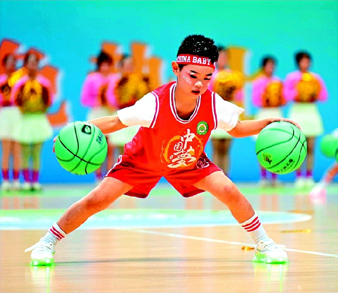 5岁萌娃在开赛仪式上秀球技