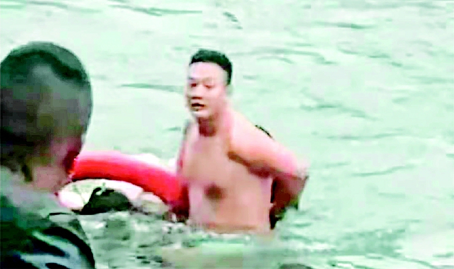 危急时刻,周围群众递给张浩楠一个救生圈,“拿到救生器具后,我跑到边上喊救人者,但没有得到回应。”这时,张浩楠凭借着经验,判断下游一处专门用于下水的小码头是合适的救援点,立刻朝着下游方向奔去。来到位置后,他迅速脱下身上的衣物和鞋子,一跃进水。