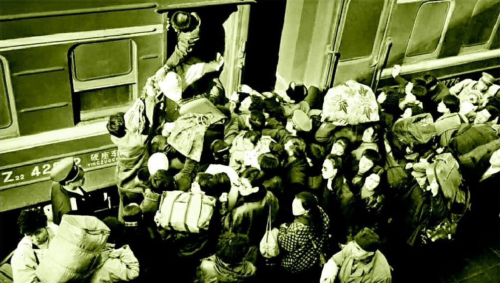当年人挤人的上车场景 均为资料图