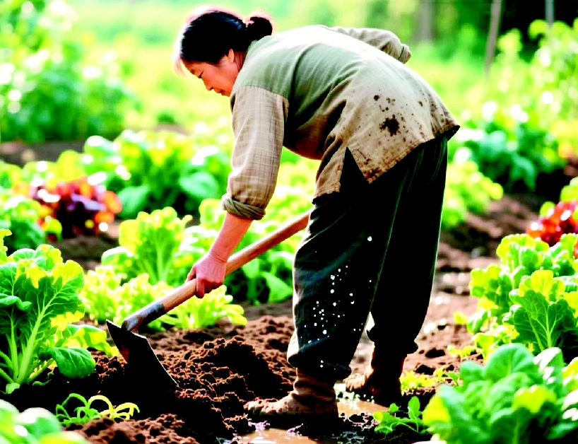 节气一到,她便忙着育苗、移栽、施肥、除草,每一个环节都做得一丝不苟。母亲种的菜种类很多,她总是一趟趟往地里跑,一畦一畦地察看那些菜苗,眼神温柔得像在注视自己的儿女。