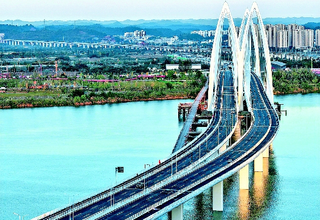 本报讯 (记者雷琰)11月24日,由蜀道集团四川路桥桥梁公司承建的遂宁市涪江六桥正式建成通车,这座兼具颜值与实用于一体的地标性桥梁,为遂宁跨江发展注入全新动能。