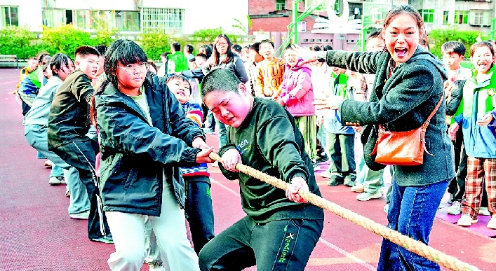 本报讯(邱海鹰刘南贤文/图)进入冬季以来,华蓥市双河小学充分利用课间10分钟,组织学生到室外参加拔河、跳绳、玩球和老鹰捉小鸡等趣味文体活动,让学生调节在课堂上绷紧的神经,缓解学习压力,抵抗寒冷,促进身心健康。