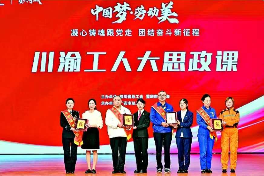广安工会大力实施职工群众思想政治引领工程,开展“川渝工人大思政课”“工会大讲堂”“劳模工匠宣讲”等活动220余场次,覆盖职工超280万人次;持续推进“工人有力量·红心永向党”“中国梦·劳动美”“劳动创造幸福”“强国复兴有我”等系列主题宣传教育200余场次,覆盖职工100万余人次……一场场感人至深的事迹分享会,一堂堂直抵人心的“大思政课”,走进工厂车间、项目工地、社区广场,全市掀起了学习劳模精神、劳动精神、工匠精神的热潮。