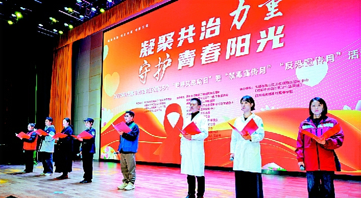 活动中,医务工作者、公安干警、社区工作者、教师、学生及志愿者代表共同宣读“禁毒防艾,携手同行”倡议书,呼吁全社会共同行动,筑牢青少年健康成长的防线。