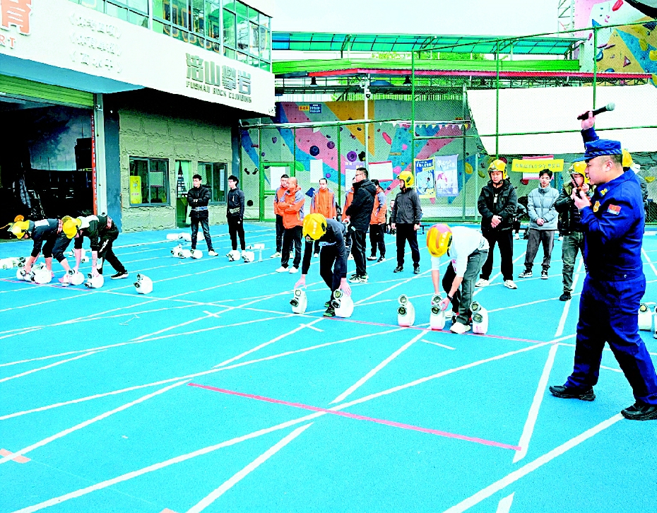 本报讯(吴健张金文/图)近日,由绵阳市涪城区总工会、区消防救援局联合主办的“劳动铸就幸福·技能点亮涪城”全区消防行业从业人员职业技能竞赛决赛在涪城区体育馆举行。来自全区9个镇(街道)和9家企业的90名选手同场竞技。
