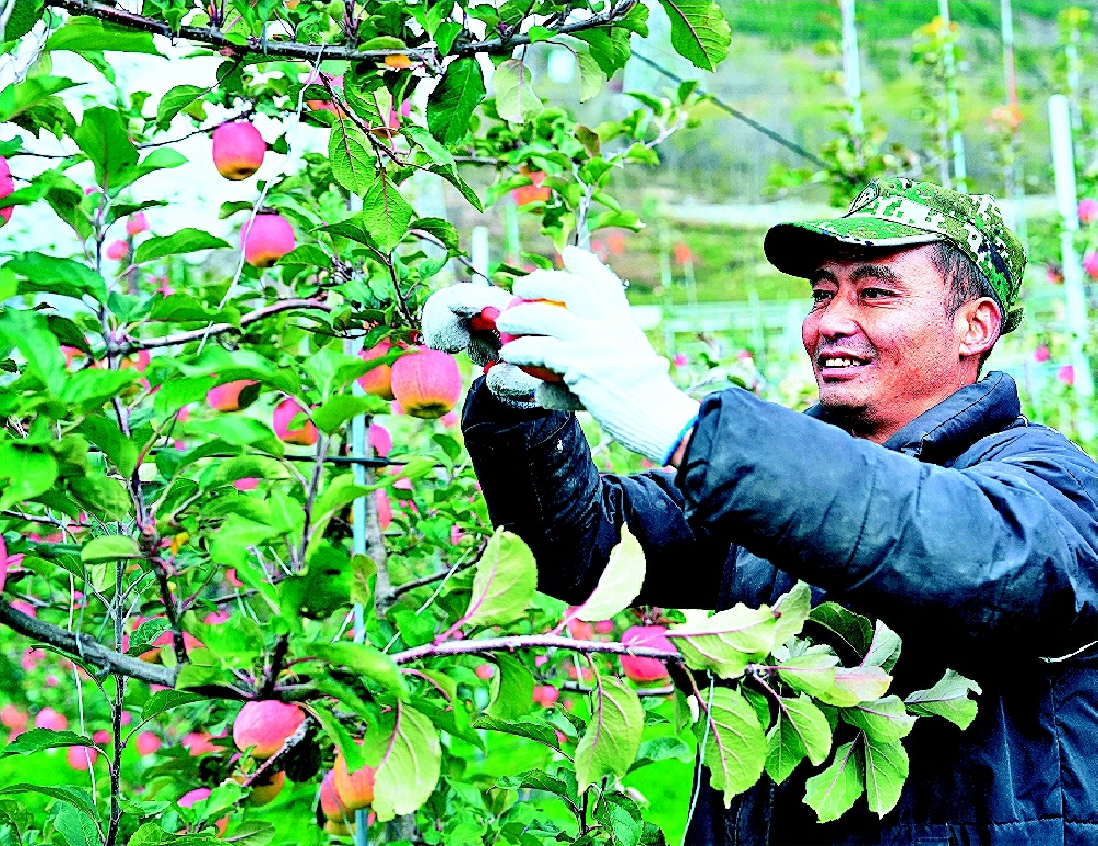 与此同时,茂县云耕种植专业合作社的果园里正涌动着甜蜜的丰收热潮。红彤彤的苹果压满枝头,采摘工人们穿梭林间,将浸润着高原阳光的果实小心归筐。这既是羌乡人民辛勤耕耘的结晶,更是生态农业在这片云上净土结出的金色硕果。
