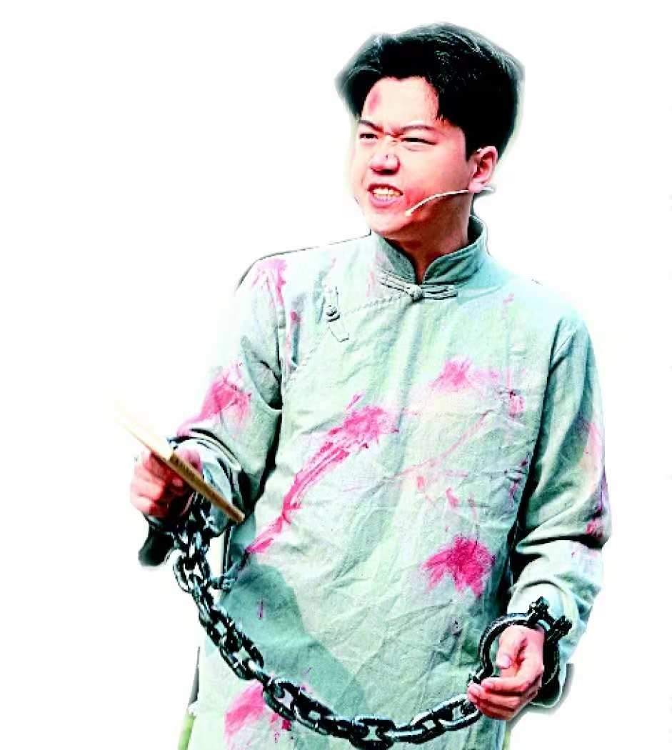 阳光斜照进古城的天井,斑驳的墙影映在周嘉城的脸庞上。他饰演的革命者被押解着走过人群,每一步都像踩在历史的脉搏上。铁链叮当,脚步沉重,他却挺直脊梁,高声喊出那句“为了光明,我愿赴死!”那一刻,他不再是舞台上被灯光照亮的演员,而是一个穿越时空、用生命呐喊的革命者。台下,一位老人悄悄抹去眼角的泪水,轻声说:“这孩子,演进了人心里。”