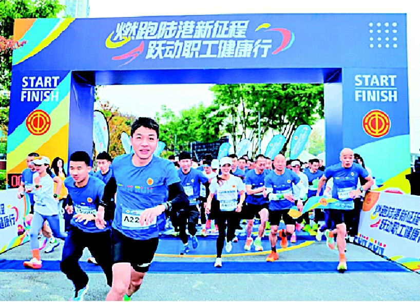 本报讯 (石金文/图)12月6日,“燃跑陆港新征程跃动职工健康行”2025年成都市青白江区职工健康跑活动在该区长流河公园举行。活动在火炬传递中拉开序幕,五位来自不同行业的劳模工匠代表沿长流河绿道接力奔跑。