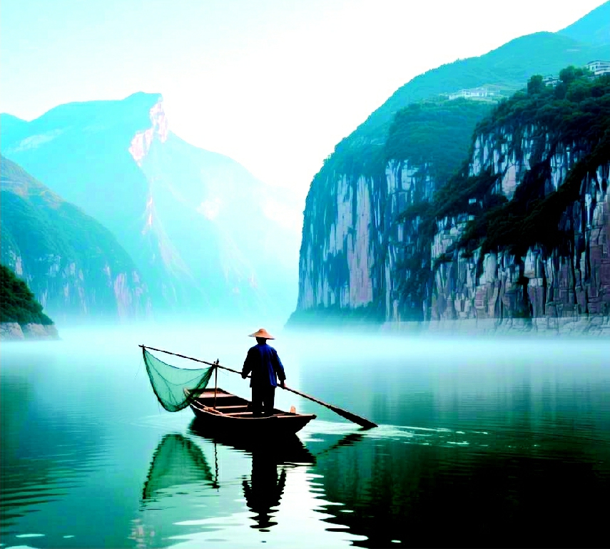 后来,大坝建成了。江水一寸一寸往上涨,吞没了“鬼见愁”,也吞没了那些熟悉的礁石和老屋。我们搬进了新城“三峡鱼城”的安置房。爷爷靠着做菜的手艺,开了一家小馆子。用的是养殖的鱼,标准化的调料,做着一碗碗生意还不错的快餐鱼。