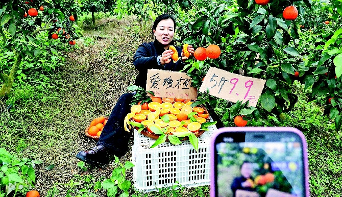 在200多亩的柑橘果园里,黄澄澄的果实挂满枝头。采摘、分拣、装箱、上车……果园里,党员志愿者们撸起袖子,忙碌地穿梭于林间。然后通过“线上直播带货+线下门店直销”的方式,全力帮村民推销这批水果,切实助农增收。