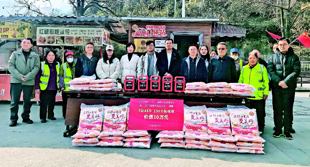 14日,在阿坝州汶川县映秀镇工会驿站,调研组一行与正在此休息的户外劳动者亲切交谈,仔细询问大家的工作与生活状况。“有困难找工会,工会永远是大家的‘娘家人’!”调研组的话语温暖而坚定。现场,全总、基金会向阿坝州总工会捐赠了5台AED(自动体外除颤器)和200个抱枕被。