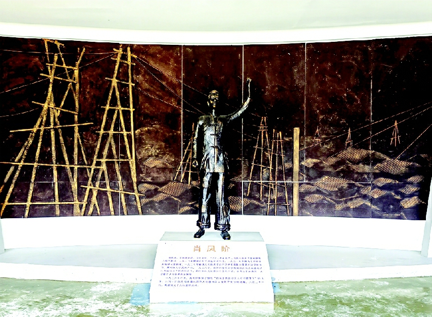 展陈馆选址于瓦窑村7组九龙湖旁并非偶然。“肖凤阶出生在瓦窑村,这里是他的故乡,也是他革命思想萌芽的地方。”曾蕖介绍道,沿湖而建的展陈馆,既保留了乡村的自然肌理,又赋予了红色教育基地独特的人文气质。馆内展陈主要分为“初生之犊”“初尝艰困”“探寻真理”“英勇就义”四大板块,全面展现了肖凤阶烈士短暂而光荣的一生。