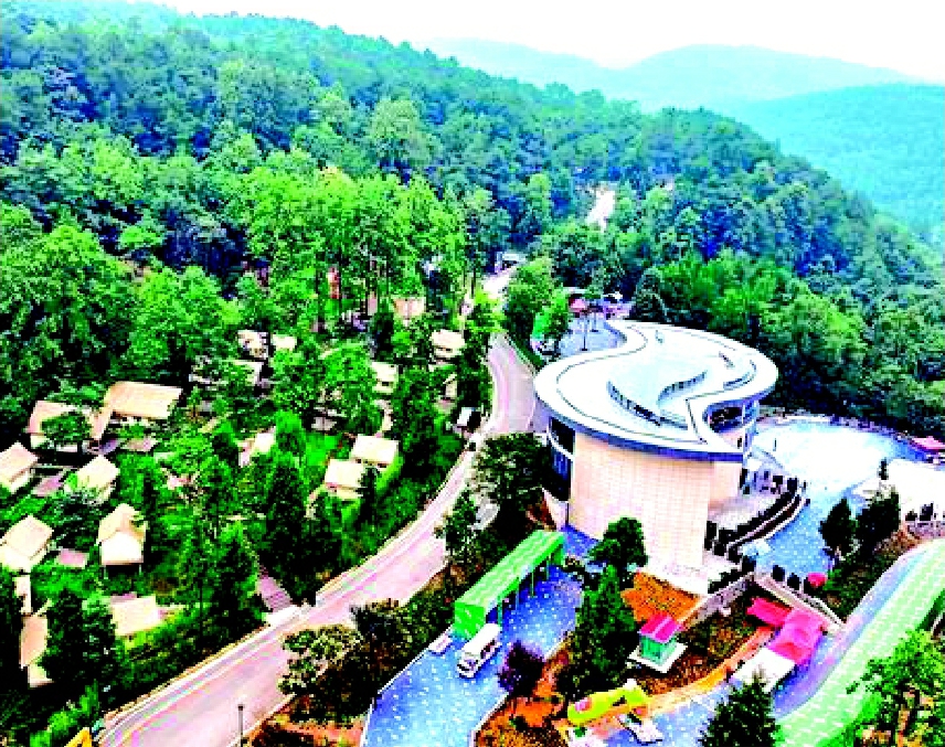 上了四方山,天空突然明亮了许多。但见浓雾在山边翻卷,恰如波涛汹涌的大海。沿着观光道路前行,不时有一顶顶米黄色的帐篷映入眼帘。帐篷区外,还有大小不等的露营台。