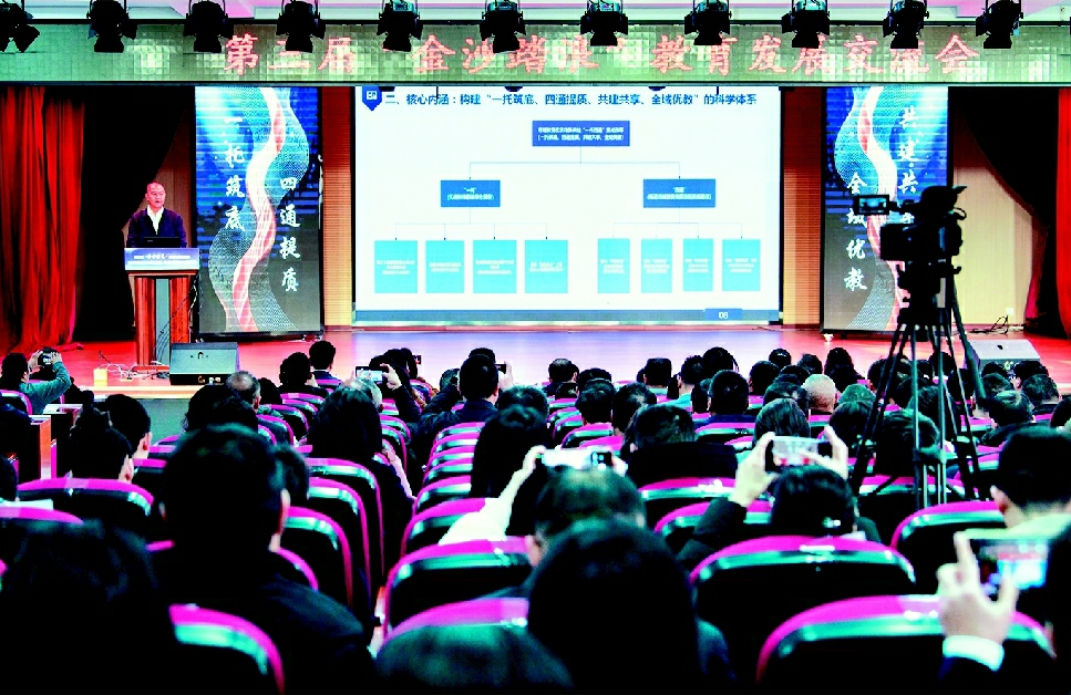 交流会分为报告实践、经验交流、专题讲座等环节,来自教育领域的专家、学者围绕如何打造一条生机勃勃、特色鲜明的金沙江教育走廊,掀起头脑风暴,碰撞智慧火花。攀枝花市教育和体育局以《实施“一托四通”集成改革,构建市域教育优质均衡发展新格局》为题,分享做法及成效,“一托”旨在托底特殊群体学生就学,“四通”重在畅通市域教育优质均衡供给路径。四川省教育科学研究院科学教育研究所副所长宋怀彬现场分析了金沙流域基础教育的痛点与挑战,分享区域基础教育的创新发展路径,从重视本土优质资源的培育与传承,示范引领学校与学校特色发展并重,AI赋能教育教学、开展“减负提质”行动研究,成立金沙教育联盟、协同高质量发展等方面提出了新思路及建议。