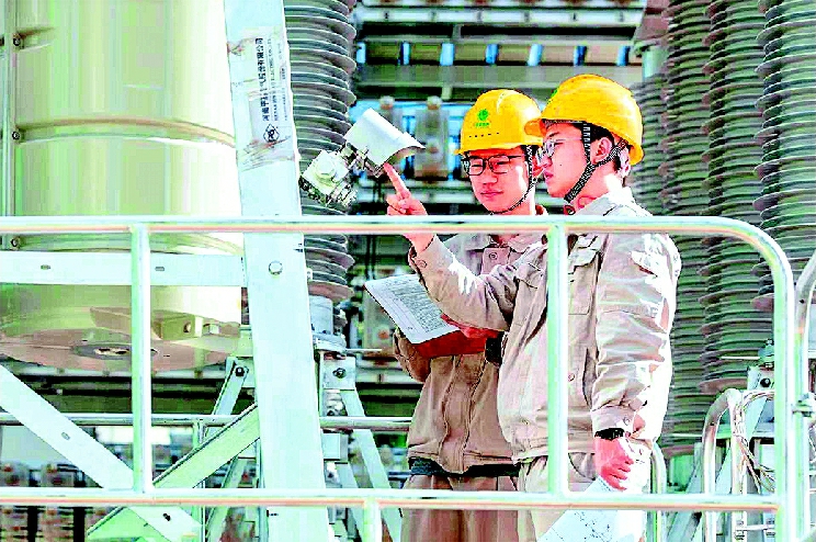在±400千伏卡麦换流站,技术人员正在紧锣密鼓开展设备调试工作 郑自豪摄
