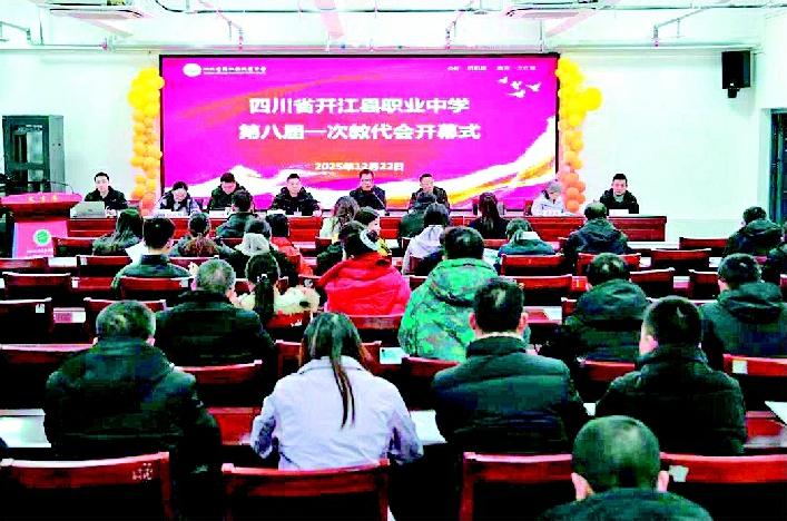 12月22日,达州市开江县职业中学第八届教职工代表大会第一次会议召开。会议深入学习贯彻习近平总书记关于职业教育的重要指示批示精神,全面落实党的二十届四中全会、省委十二届八次全会、市委五届十一次全会精神,旨在以“深耕梦想教育”为初心,围绕“成人、成才、成功”递进式育人路径,系统谋划学校高质量发展的新蓝图。