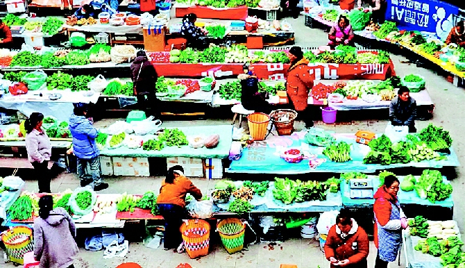 本报讯(肖定怀文/图)12月25日早晨,在巴中市南江县集州街道红塔社区农贸市场,市民在干净整洁、摆放有序的摊位前选购新鲜时令蔬菜。