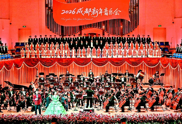 本报讯(实习记者刘佳怡)12月29日晚,由成都市委宣传部、成都市文广旅局主办的2026成都新年音乐会在成都城市音乐厅激情奏响。来自各行各业近千名市民代表在优美动听、慷慨激昂的旋律中,回味过去一年的奋斗历程,感受幸福成都的美好生活,用美妙的音乐之夜迎接即将到来的新年。