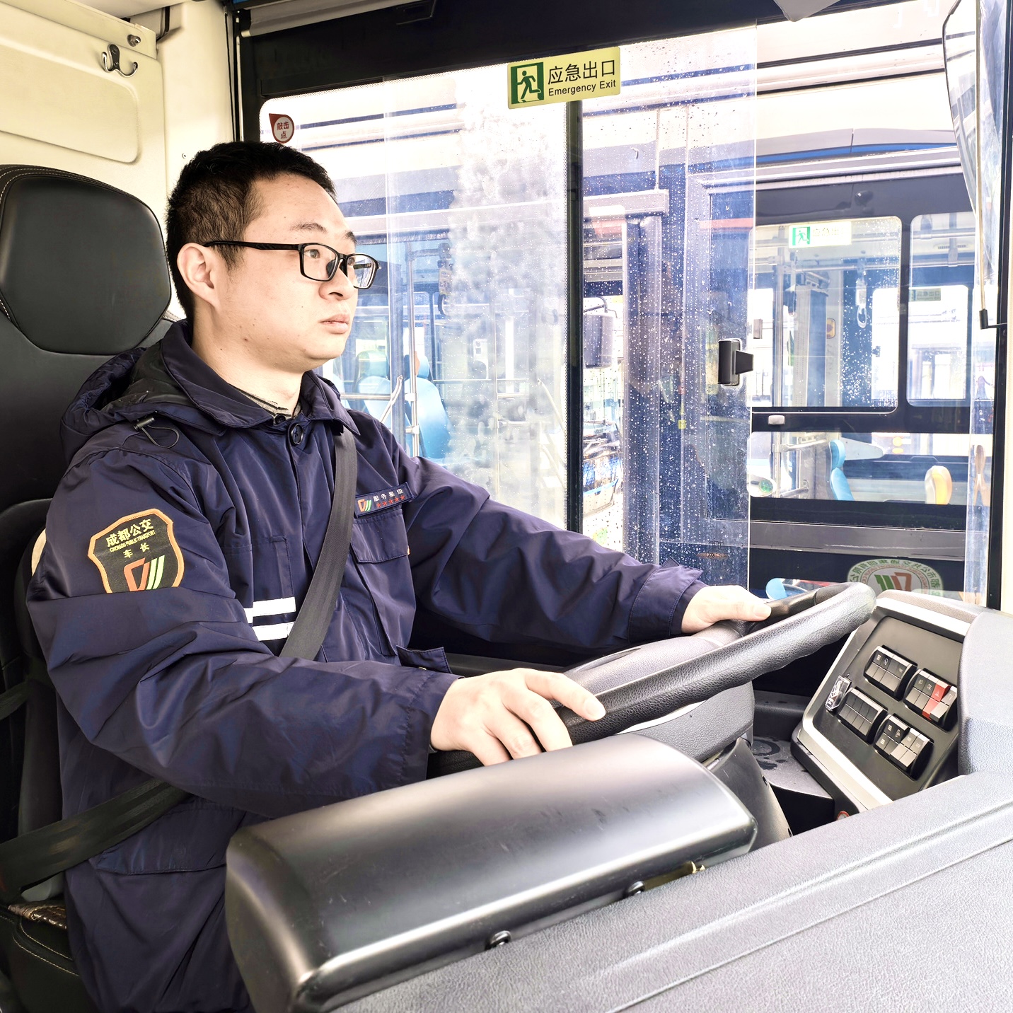 2025年12月28日,在成都丛荟路公交站,记者见到了成都公交集团东星巴士有限公司驾驶员环建宇。