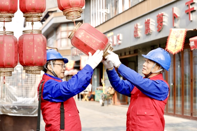 “灯笼接头完好,测温正常。”1月1日,在全国乡村振兴示范村---成都郫都区战旗村的非遗作坊内,游人络绎不绝。国网四川电力(成都郫都)连心桥党员服务队队员对非遗作坊、郫都豆瓣博物馆等景点及充电站电力设施进行特殊巡检和维护。