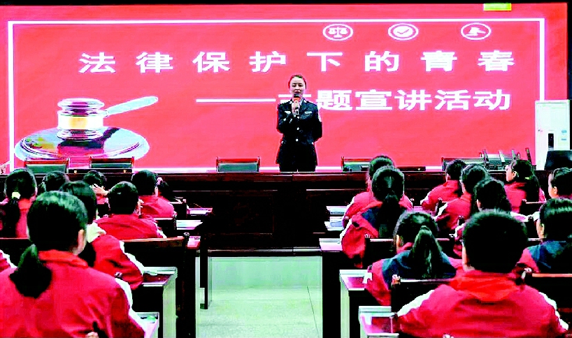 本报讯(袁玉华文/图)1月4日,泸州市江阳区“泸法麒麟”普法志愿者走进该区五星小学,围绕反诈、防侵害、禁毒等主题,为孩子们带去了一堂生动而特别的新年法治课。