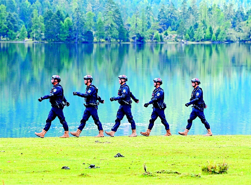冬日的伍须海,以“康巴第一海”的瑰丽景致吸引着八方游客。在这片圣洁的秘境中,九龙县公安局特巡警大队大队长王全龙正带领队员穿梭于游客之间,以坚守筑牢安全防线。