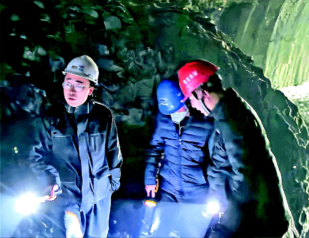 在隧道进行检查的黄海(左一)
