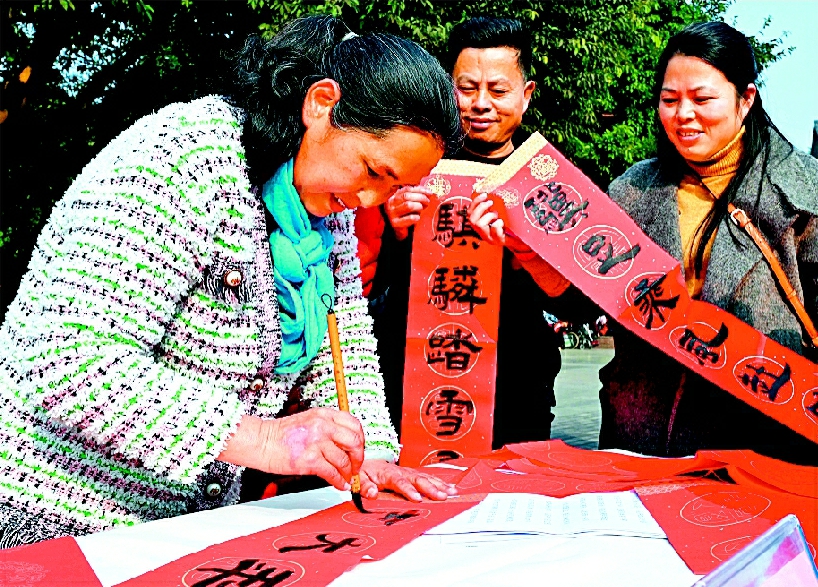 春节临近,内江市文联等单位积极开展“万福迎春”公益活动,组织书法家深入社区、农村、企业等地,义务书写春联,将节日的美好祝福送到群众手中。