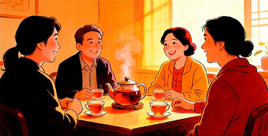 人生第三道茶,清淡如风,回味无穷。退休后,意味着步入老年,一切都成了过眼云烟,荣辱得失都不重要了。这杯茶已经泡得淡如白水,喝着它,回味着从前那些浓香四溢的茶,回味着那些回不去的岁月。这时,会想起很多,一壶绿茶,一缕书香,在如豆的烛火下,茶香缭绕,书香浸染;一壶红茶,邀几知己,在斗室闲聊,茶香话蜜,沁人心脾;一壶普洱茶,文友相聚,在柳荫下摆上茶桌,谈诗论道,淡名、淡利、无争,收获人生真谛。此时,方知我们追求与向往的东西,其实很简单。所需要的不过是一日三餐,一衣遮体。