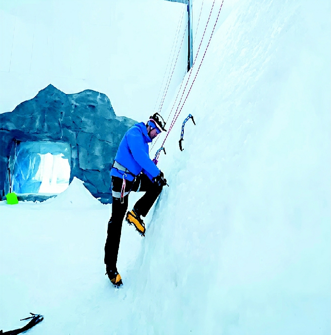 除冰面优化外,攀冰馆全程选用顶级装备,所有教练持证上岗,严格执行从基础到进阶的科学教学流程,从装备、人员、流程三方面构建全方位安全防护体系。场馆服务覆盖全人群:为初学者提供全套装备、教练指导及保护服务,适配60°、79°体验冰壁;为进阶及专业人群打造90°+顶部负角度专业冰壁与12米高干攀比赛墙,兼顾尝鲜需求与专业追求。未来,场馆还将联动四姑娘山等川西资源,推出“运动+旅游”特色产品,打造一站式户外运动全链条服务。