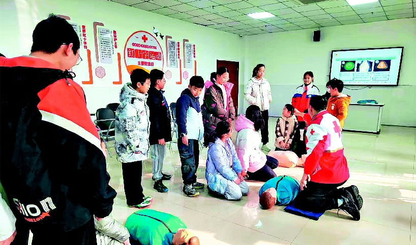 本报讯(袁玉华张红文/图)1月27日,泸州市江阳区关心下一代工作委员会举办的“应急救援指挥官”职业体验活动现场,一群少年正专注地进行心肺复苏实操训练。这场特别的“职业课”通过模拟真实救援场景,引导青少年在实践中掌握守护生命的关键技能。