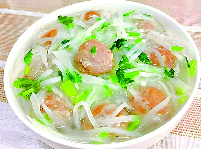 做法:1.白萝卜去皮,用擦丝器擦成细丝,加少许盐抓匀,腌制10分钟,然后挤出里面的水分;2.把挤干水分的萝卜丝放进碗里,打入1个鸡蛋,加入面粉和淀粉,搅拌均匀,做成萝卜丸子馅料;3.锅里加适量清水,放入姜片,大火烧开;4.用手把馅料搓成小丸子,放进锅里煮5分钟,直到丸子浮起来;最后加适量盐调味,滴几滴香油,撒上葱花。