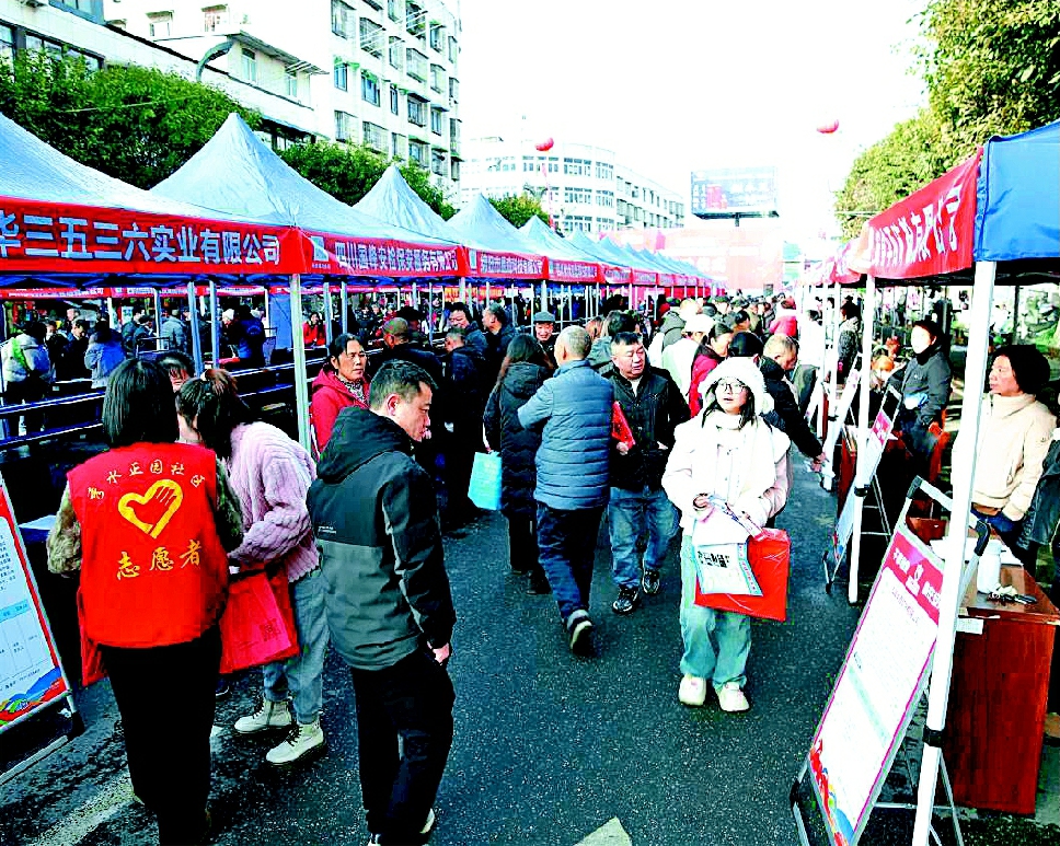 本报讯(吴健段馨萍文/图)近日,由绵阳市安州区委、区政府主办,区总工会、区人社局等单位承办的“2026年春风行动暨就业援助月”专场招聘活动,在秀水镇秀丰干道举办。