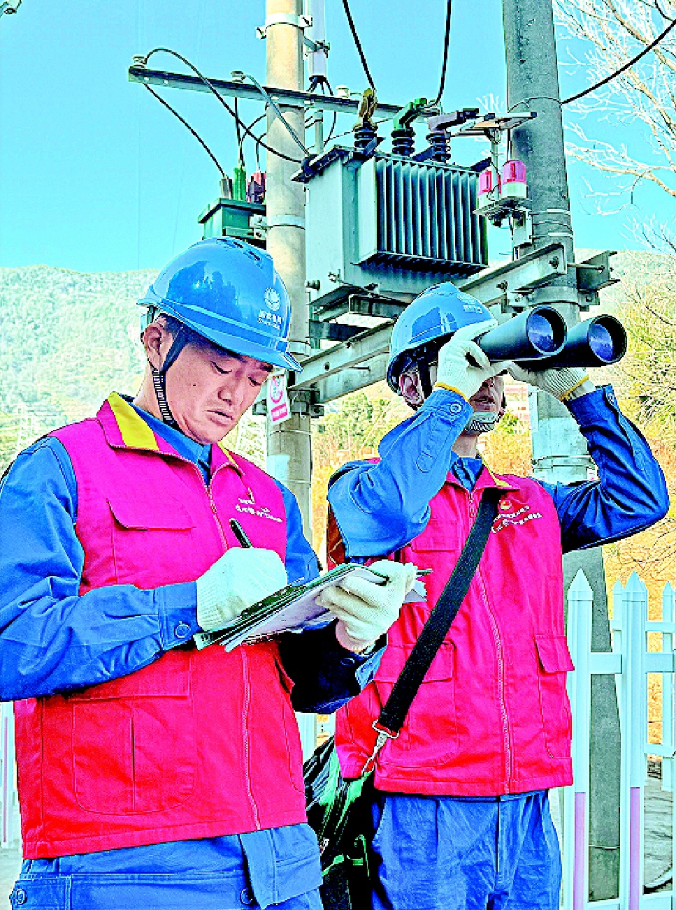 工作人员对城区节日亮化设施配套低压配电线路进行检查 刘中夏摄