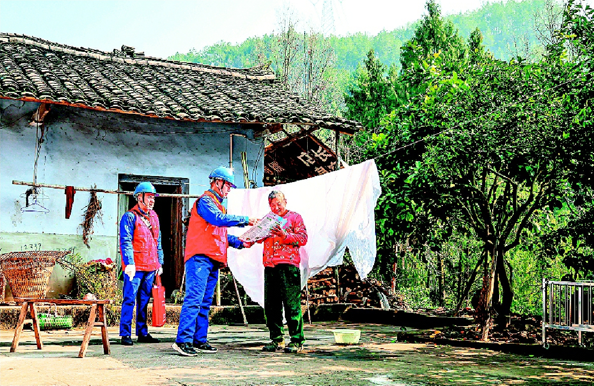 在巴州区光辉乡白鹤山村,工作人员为客户讲解安全用电知识 王志刚摄