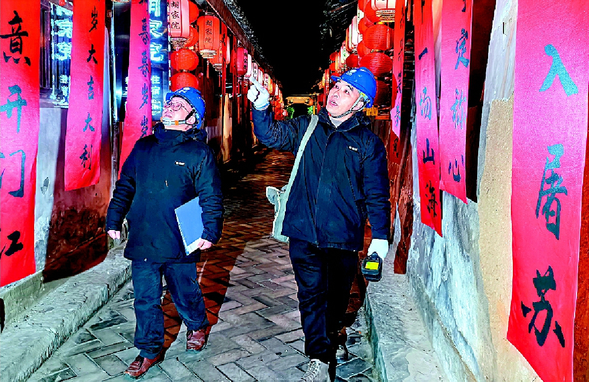 在阆中古城,工作人员到景区商户开展用电安全检查 汤晓莹摄