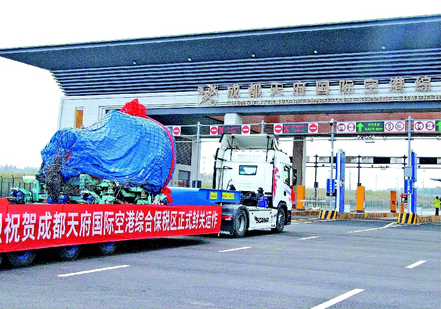 本报讯(记者邓霞)2月27日,四川首个空港型综合保税区---成都天府国际空港综合保税区正式封关运作。当日,在成都海关所属成都双流机场海关关员监管下,一辆装载空客A321飞机发动机的货柜车经卡口驶入综合保税区,标志着成都天府国际空港综合保税区首单业务正式落地。
