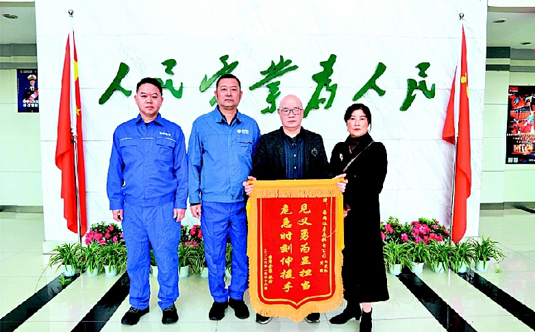 2月26日上午,获救市民李军和家人专程来到国网眉山仁寿县供电公司,将一面写着“见义勇为显担当危急时刻伸援手”的锦旗,郑重送到电力职工黄斌、向光红手中,一遍遍说着:“谢谢你们,给了我第二次生命。”