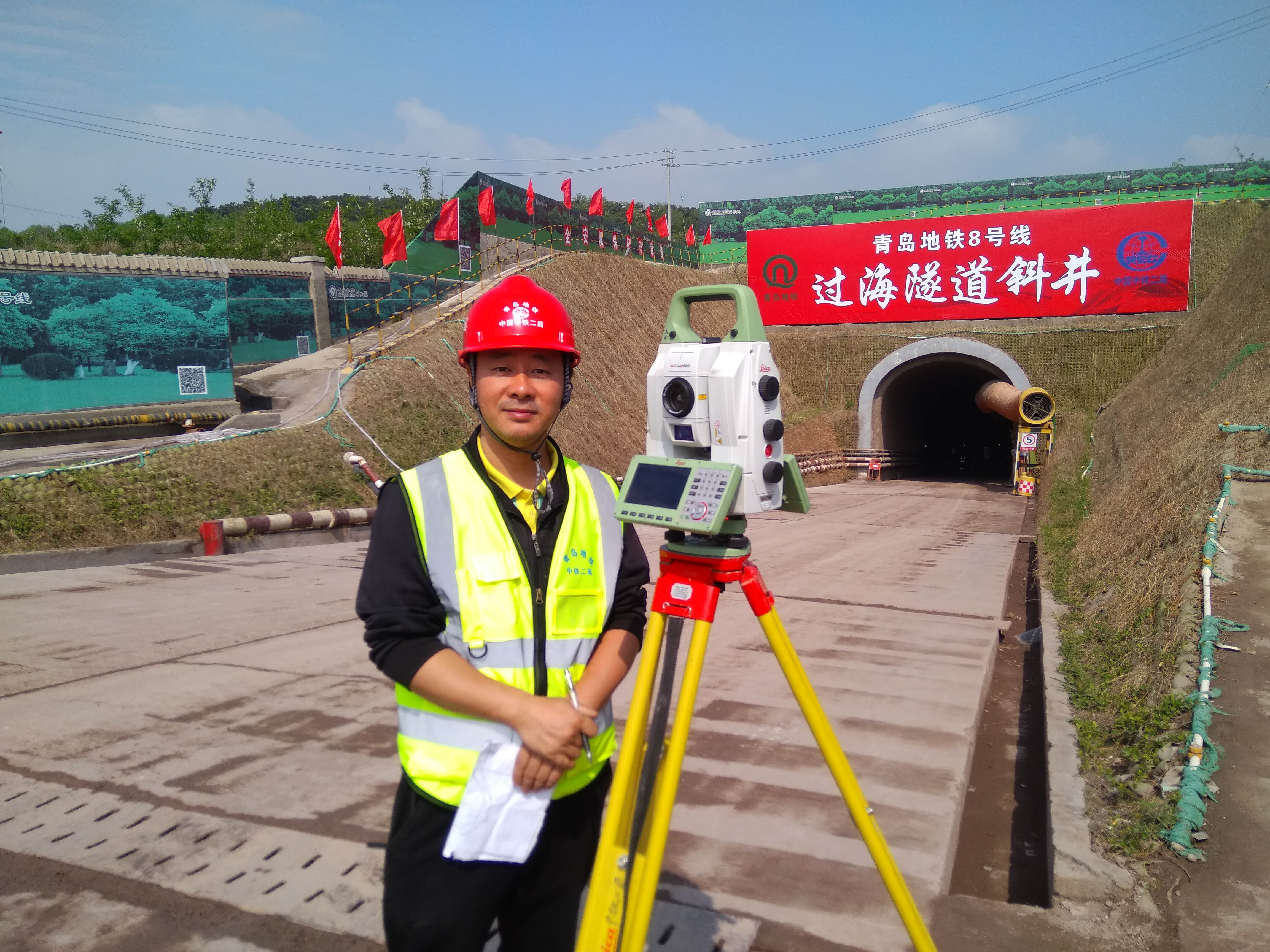 郭平在跨海隧道施工现场测量