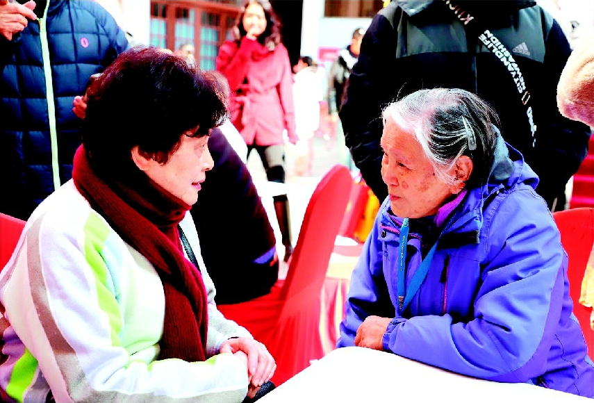 86岁的郑晋橪老人在人群中停下了脚步。她盯着不远处一位头发花白的老人,嘴唇颤抖、热泪盈眶。