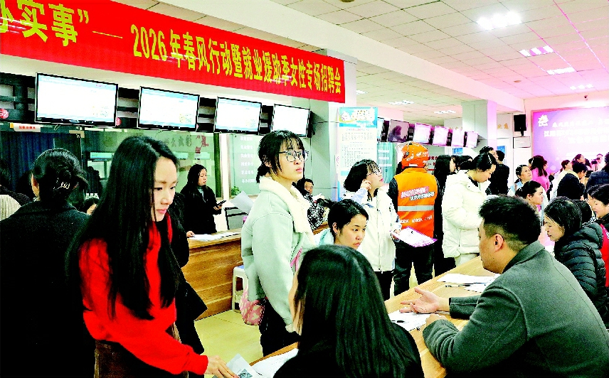 本报讯(袁玉华文/图)3月6日,泸州市江阳区2026年“春风行动”暨就业援助季女性专场招聘会在区人力资源市场和天远广场同时举办。活动精准聚焦女性求职需求,重点助力待业妇女、应往届高校女毕业生、女农民工等求职人群,进一步促进全区女性劳动者充分就业。