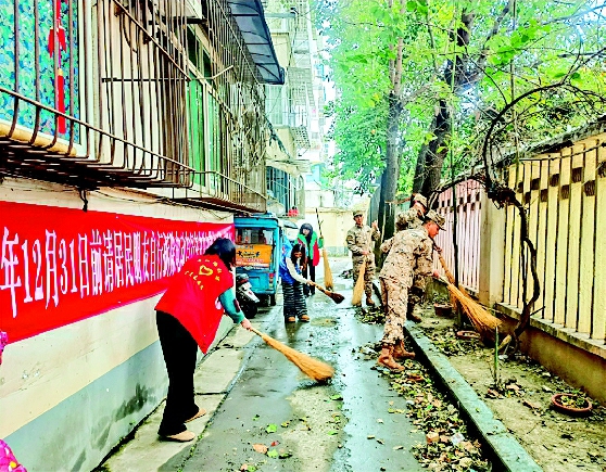 活动中,武警官兵们发扬不怕苦、不怕累的作风,与社区志愿者一起拿起扫帚、抹布,对院内公共区域和特殊困难家庭屋内进行全面清理。大家重点攻坚卫生死角、堆积杂物和厨房油污,让原本略显杂乱的院落环境焕然一新。