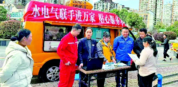本报讯(李恒惠记者向晓文文/图)3月9日一早,广元市利州区古堰社区广场上,一辆贴有“流动服务共享车”标识的白色车辆格外醒目。车前,来自国网广元供电公司、供水公司和燃气公司的服务人员一字排开,热情接待前来咨询的居民。