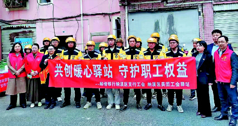 本报讯(李洁代永祥文/图)3月12日,泸州纳溪区总工会开展“共创暖心驿站守护职工权益”专题宣讲活动,提升外卖员反诈防骗能力,为区域外卖员送上“安全礼包”。