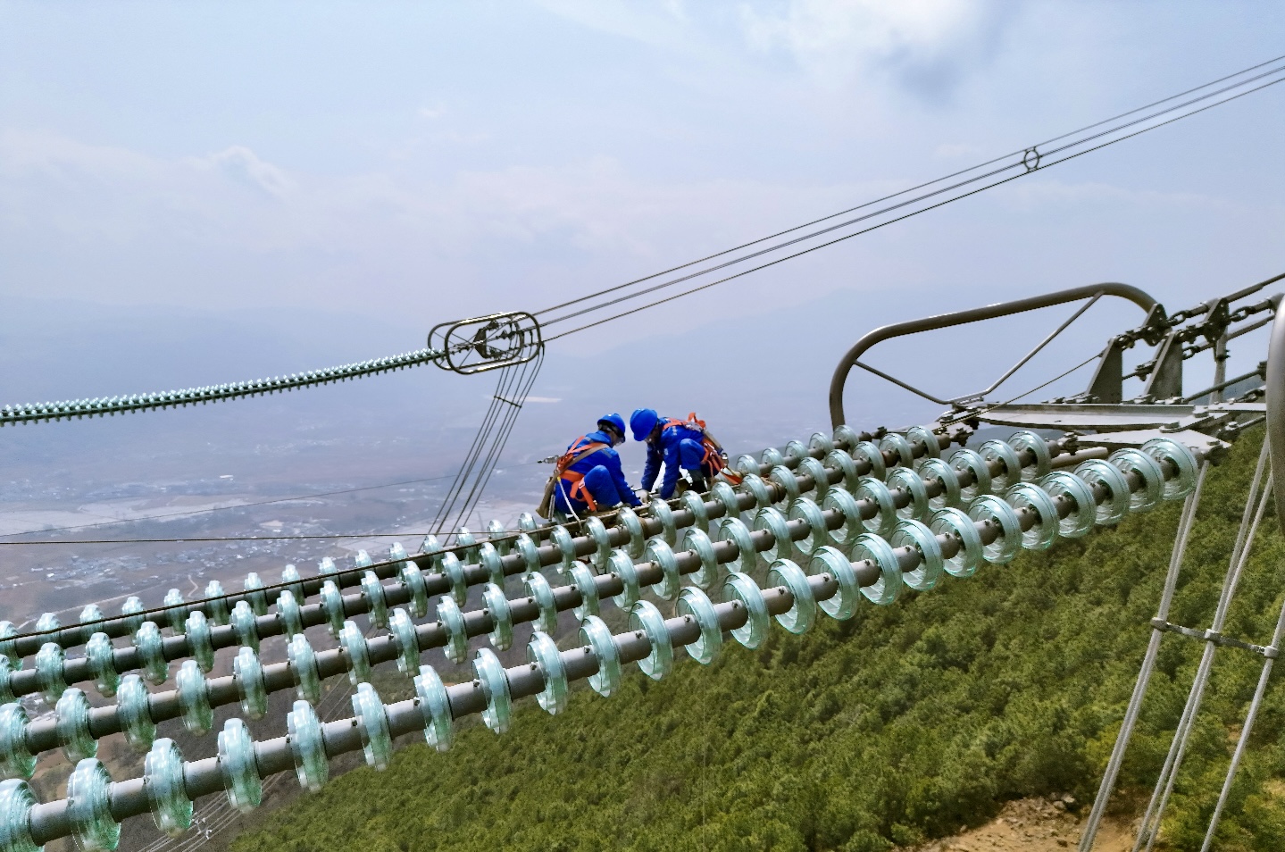 检修人员正在更换自爆绝缘子 罗伍达摄