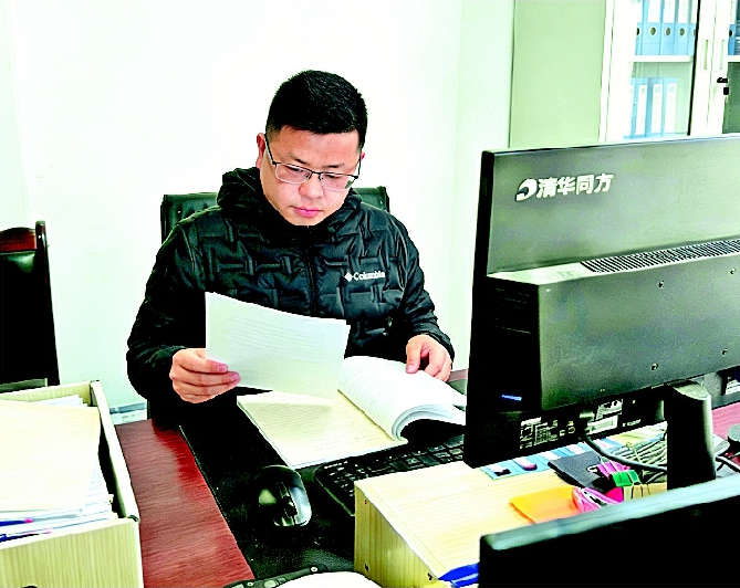 衡恒在办公室整理资料 受访者供图