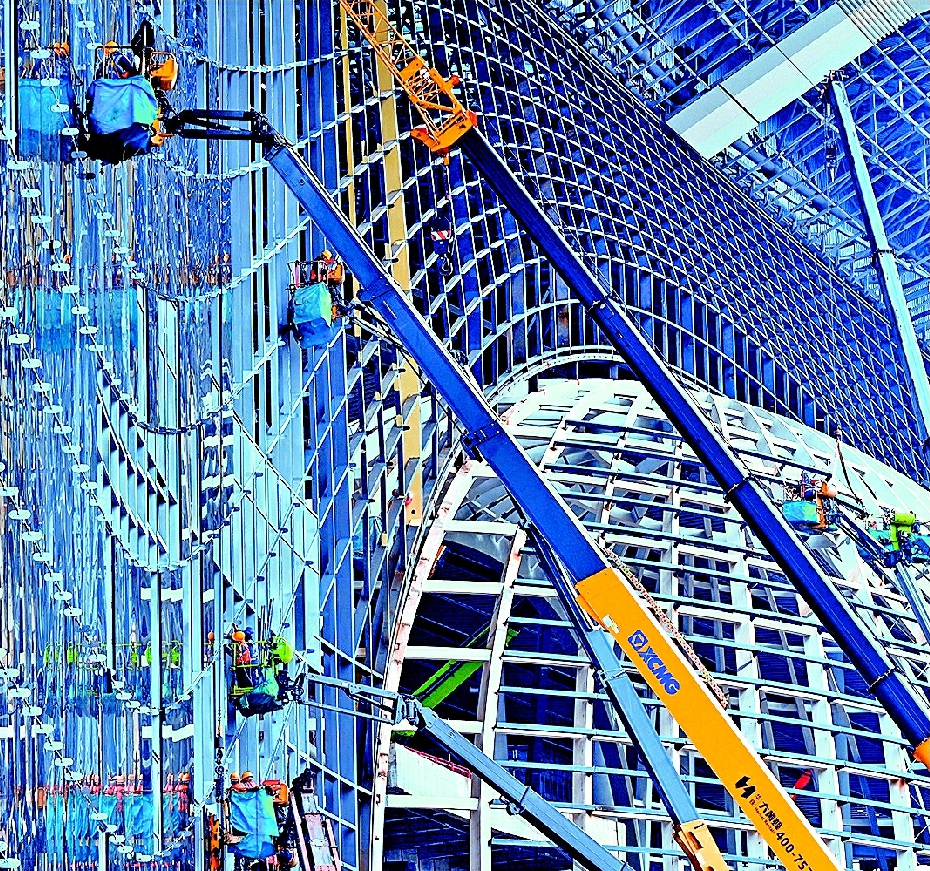 3月22日,成都铁路枢纽核心工程天府站建设现场一派繁忙,站房外部玻璃幕墙安装与内部装修装饰工程正有序推进,项目预计2026年建成投用。王正伟摄(据四川在线)