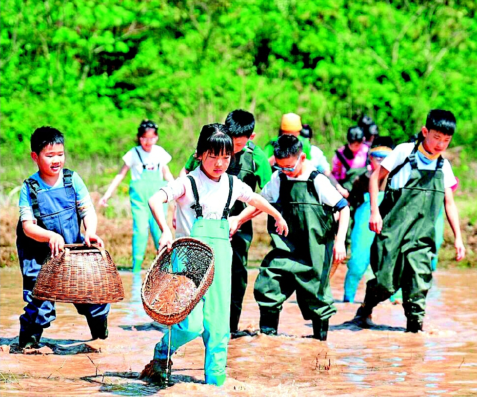 川航宝贝春野探险独立营组织孩子们稻田摸鱼 均为受访单位供图